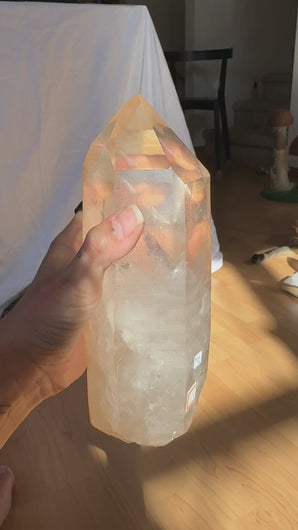 Tangerine quartz is a variety of quartz with a natural orange hue, often caused by iron oxide on or within the crystal. Metaphysically, it’s believed to carry a vibrant, uplifting energy that promotes joy, creativity, and confidence. Many people associate it with the sacral chakra, linking it to emotional healing, passion, and motivation. Tangerine quartz is also thought to help release fear and past traumas, encouraging a sense of playfulness and curiosity about life. Its warm, radiant energy is said to inspire self-acceptance and help one move forward with optimism and enthusiasm. From Diamantina, Brazil. Approximately 4.56 lbs, 9.5x3.5x3.5 inches